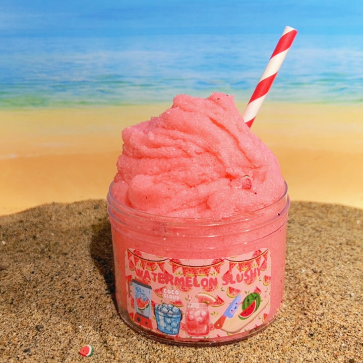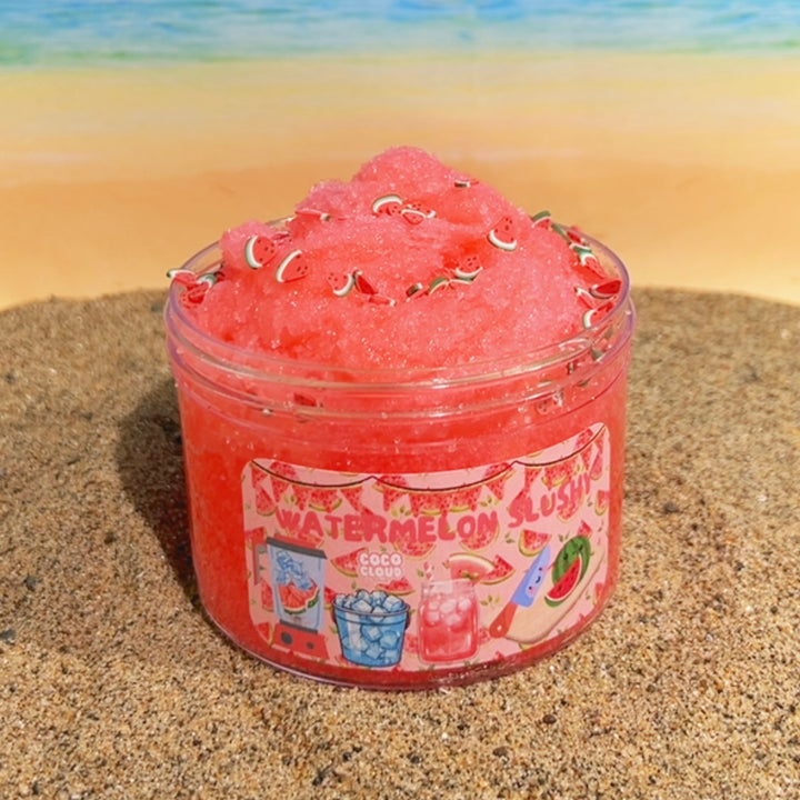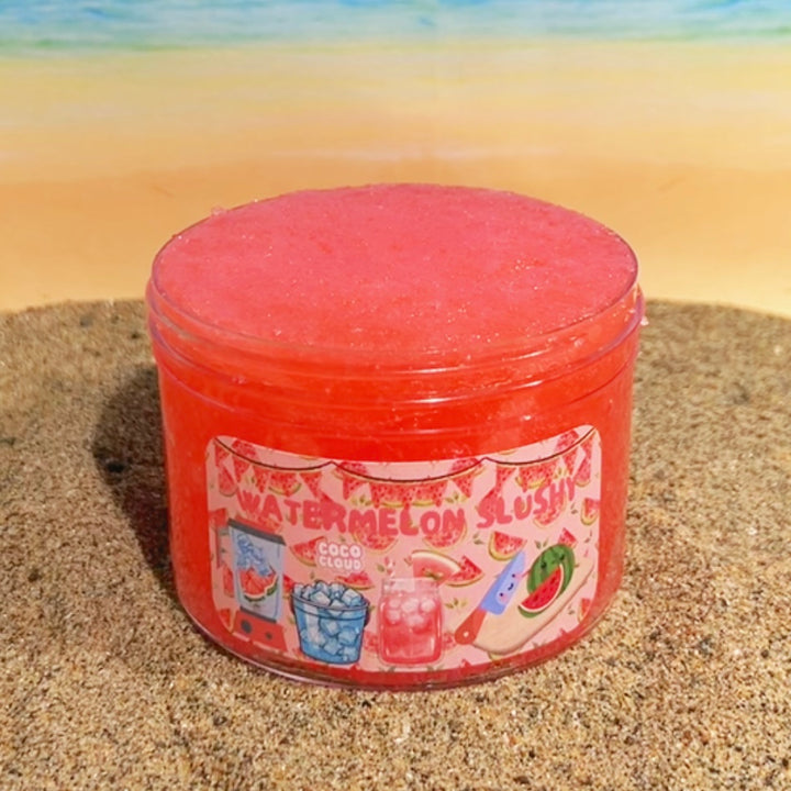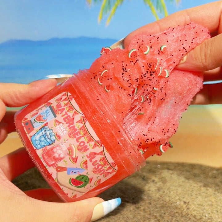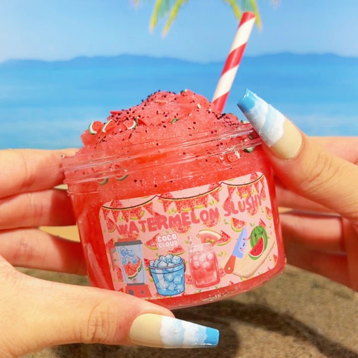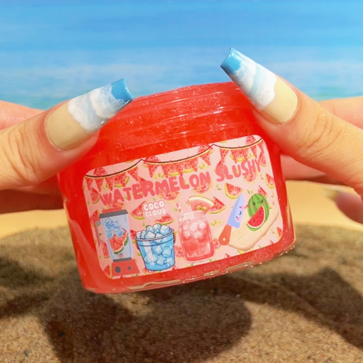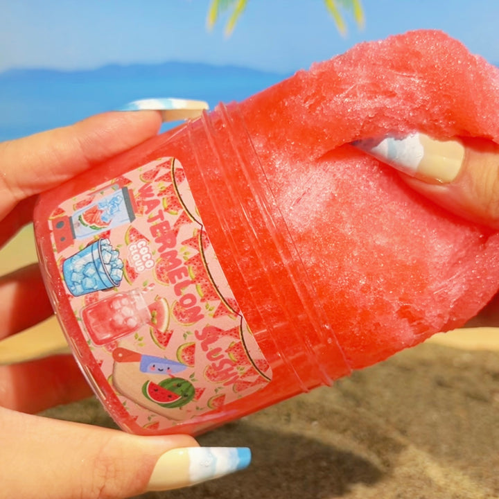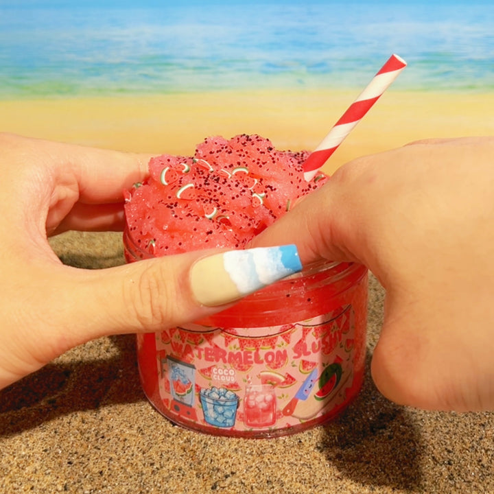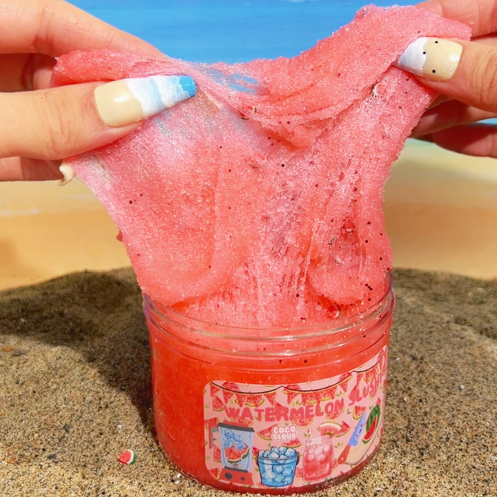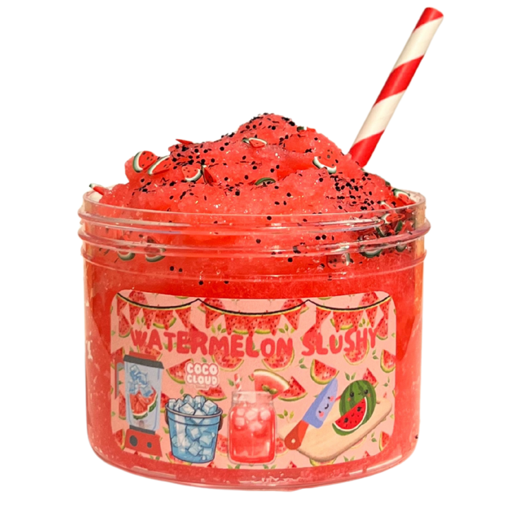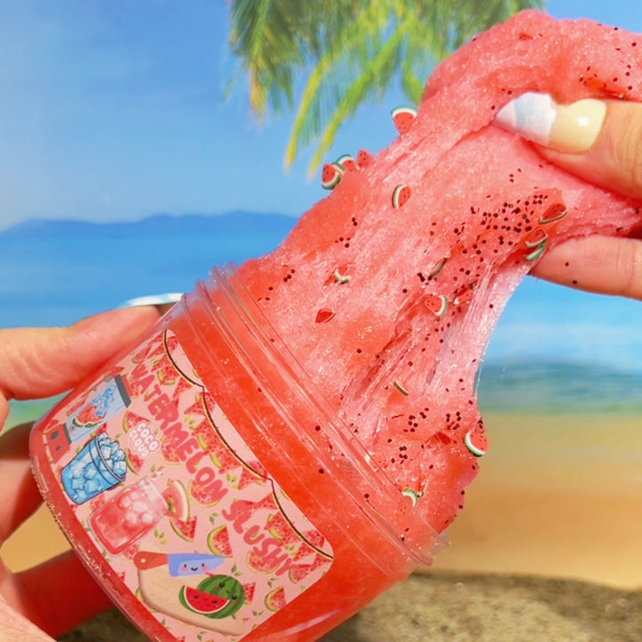 Get ready to chill with Watermelon Slushy, a juicy watermelon-scented ice slime that puffs up way more than your typical ice slime! Watch it inflate as you stretch and squish, dotted with mini watermelon slices, sparkling black chunky glitter, and a cute mini paper straw for that extra splash of summer fun. This slime is bursting with fresh, fruity vibes and endless stretchy delight!